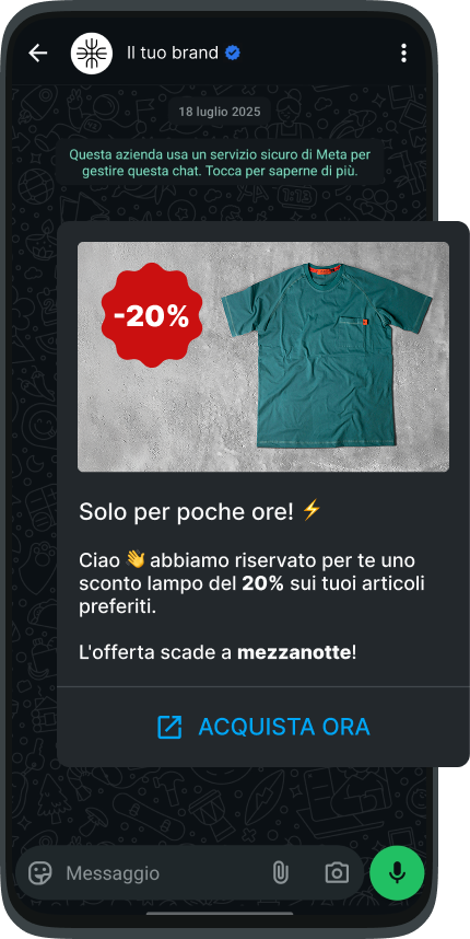 Dimentica lo spam. Invia promozioni esclusive basate sugli interessi reali del cliente, garantendo tassi di conversione impossibili da raggiungere via email.