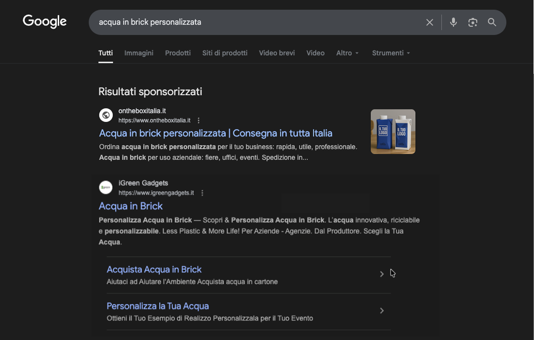 La ricerca attiva il tuo annuncio personalizzato che compare nei primissimi risultati