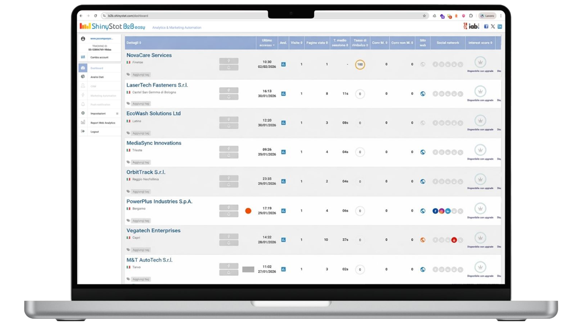 Absolutely yes. Shinystat B2B identifies legal entities (companies) via public IP addresses. It does not profile individual citizens, ensuring maximum privacy compliance.