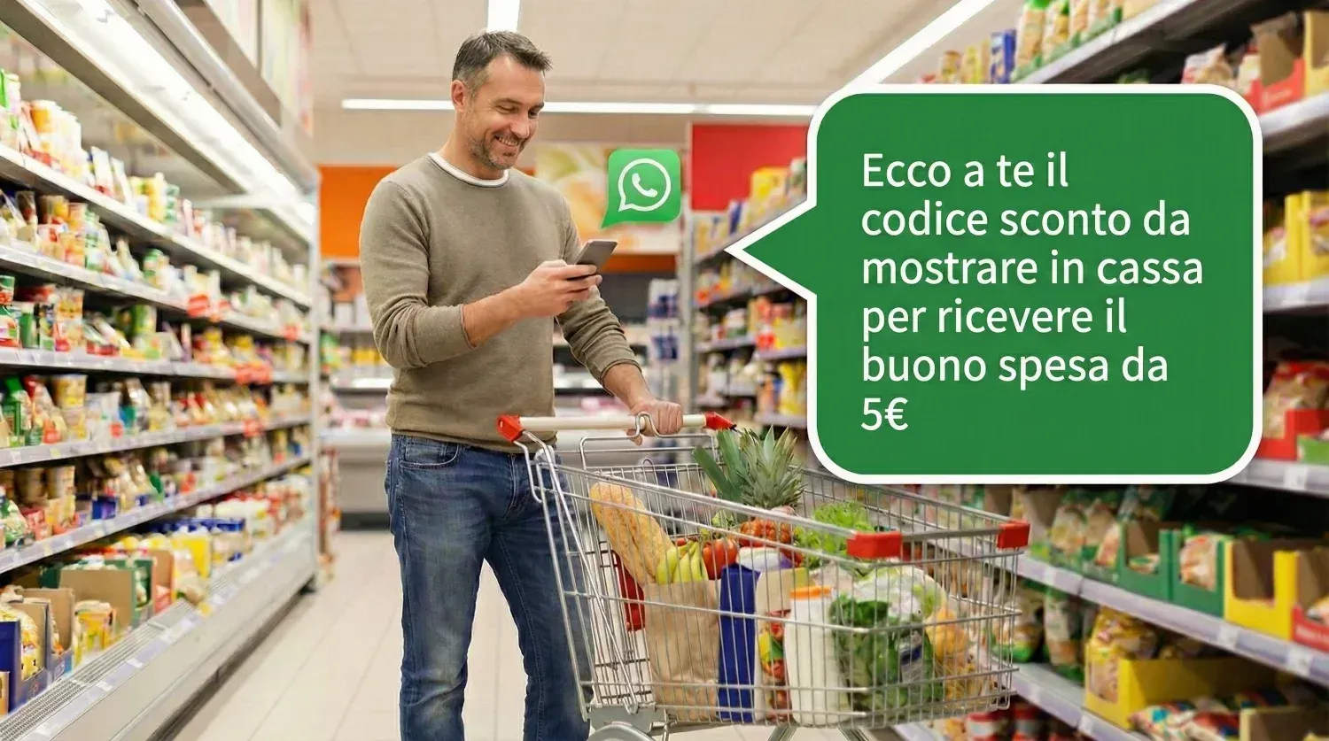 In automatico riceve un SMS o un WhatsApp con il codice sconto da mostrare in cassa