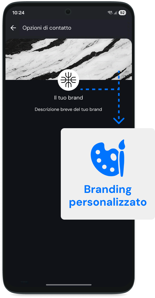 Allinea la comunicazione alla tua Corporate Identity. È possibile personalizzare l'interfaccia della chat con i colori istituzionali e il banner di copertina, garantendo che ogni Chat RCS sia un'estensione proprietaria del marchio.