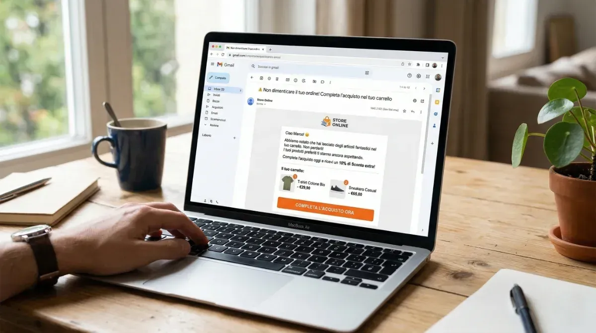 Un utente aggiunge prodotti al carrello e sparisce. Con i flussi automatizzati lo ricontatti via email, WhatsApp o SMS nel momento giusto — con un reminder, un incentivo o semplicemente ricordandogli che è ancora lì ad aspettarlo.